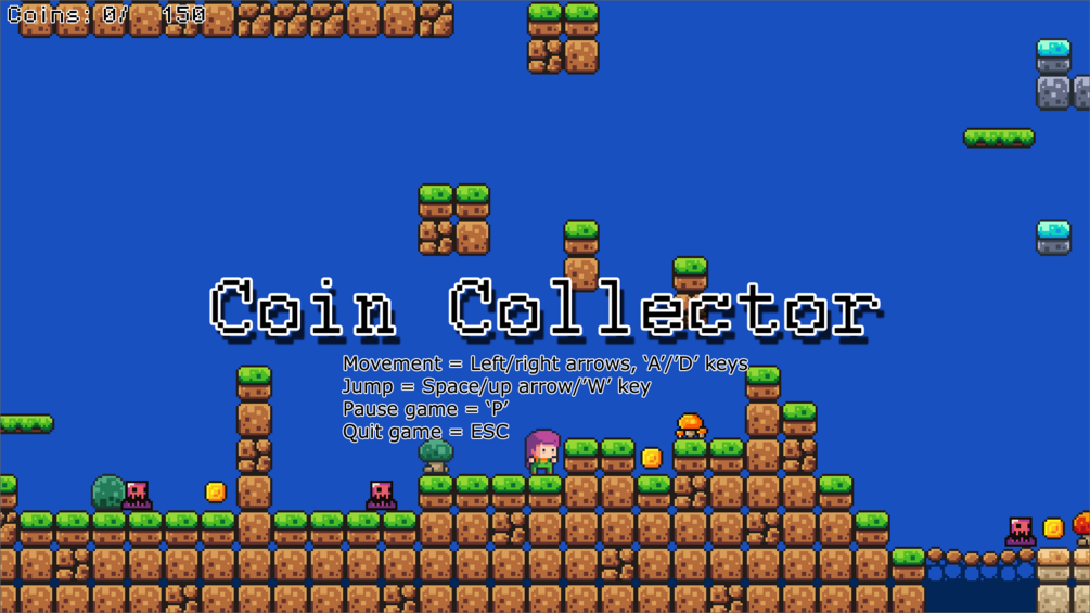 A short and simple 2D platformer. Collect the coins and avoid the enemies!